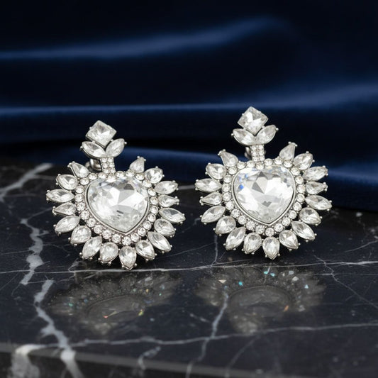 Stud Clear Crystal and Glass Heart Earrings