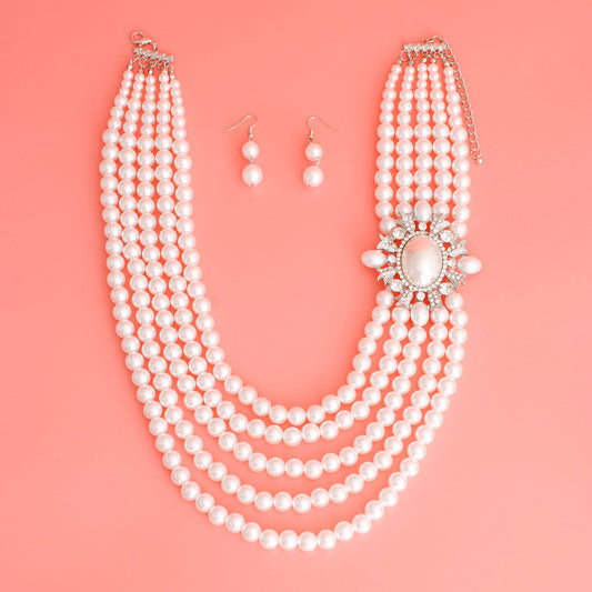Necklace High Impact Gold Pearl Glam Bib Set Women