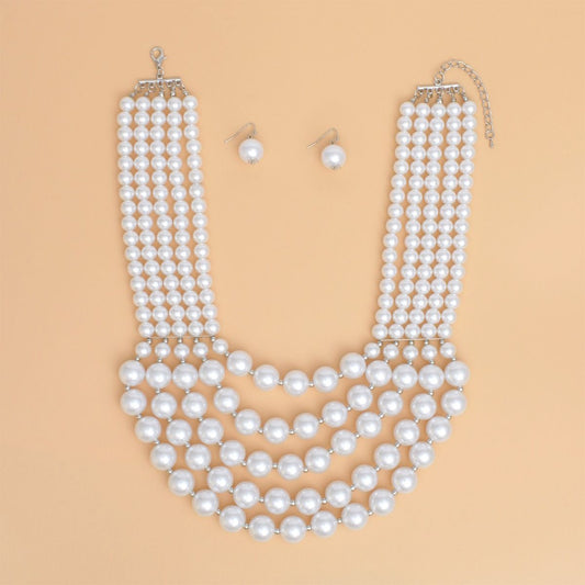Pearl Cream 5 Strand Chunky Layered Necklace