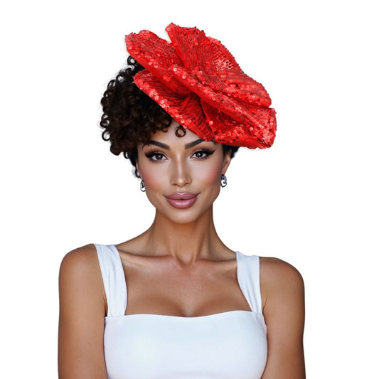 XL Flower Red Sequin Hair Clip Headband Brooch