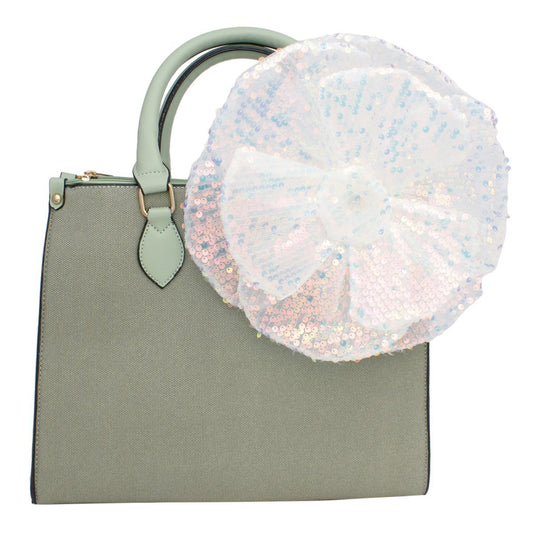 XL Flower White Sequin Hair Clip Headband Brooch