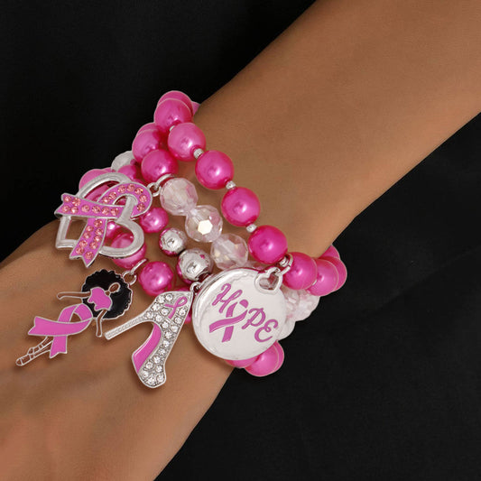 Bracelets Light Pink Breast Cancer Hope Set Women