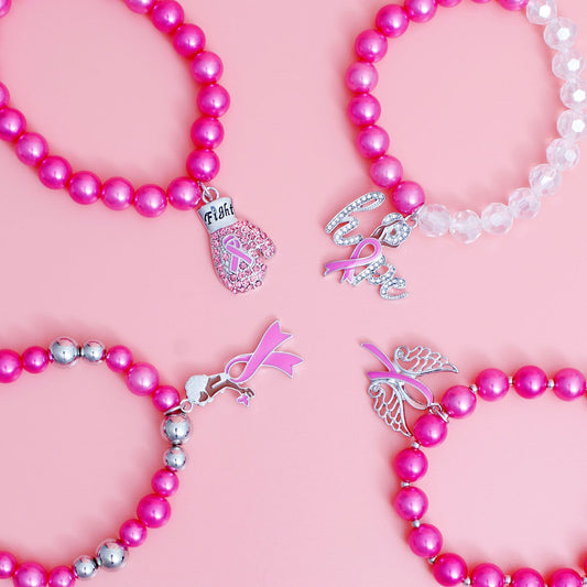 Breast Cancer Pink Pearl Fight 4 Pc Bracelets