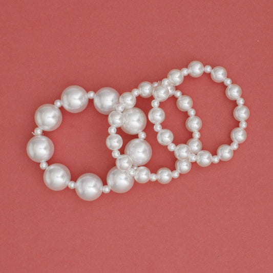 3 Pcs White Pearl Classic Coordinated Bracelet Set