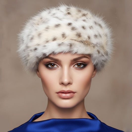 Beret Luxe Leopard Faux Fur Winter Cap Women