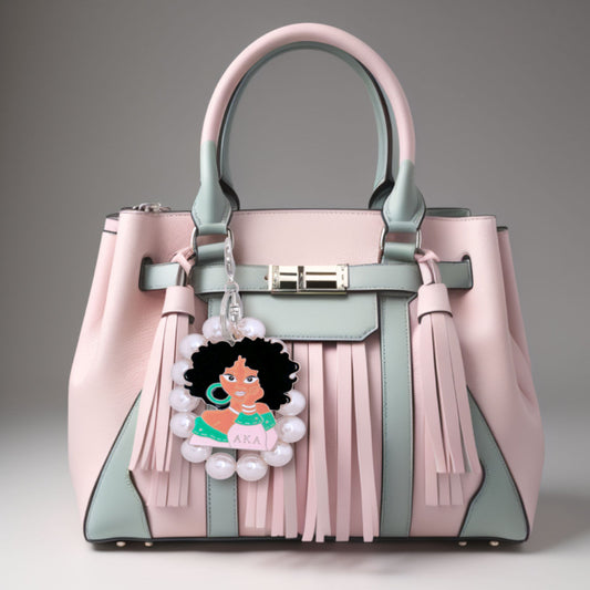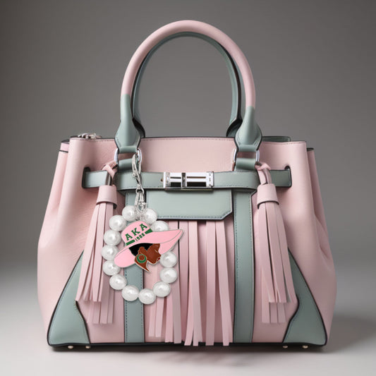 AKA Sorority Heart Pink Green Bling Brooch Women