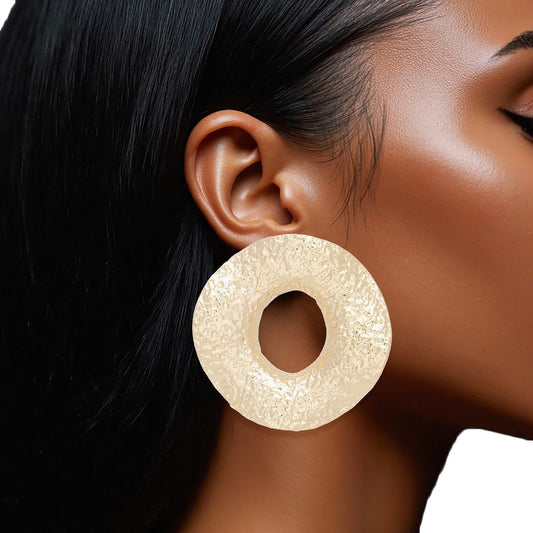 Stud Gold Forged Metal Wavy Ring Large Earrings